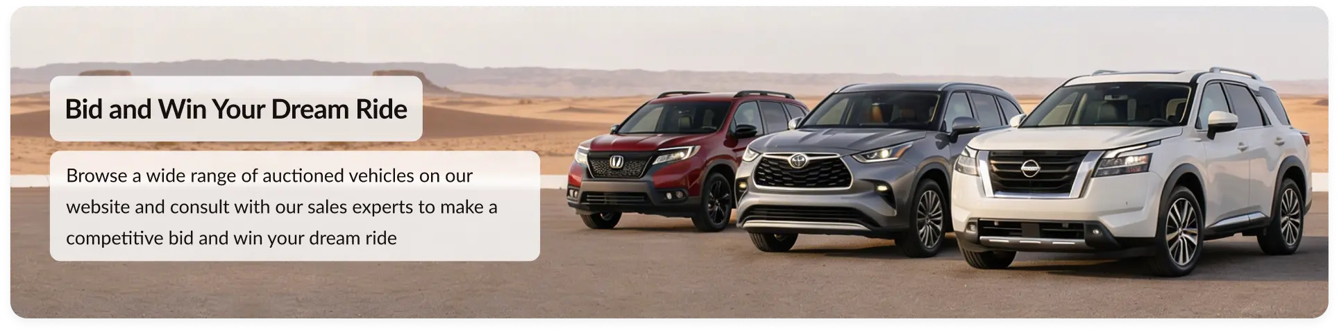 From registration to bidding and finalizing your purchase, we offer our customers at every step so they have a hassle-free experience. With us, you can enjoy an effortless vehicle purchase experience.