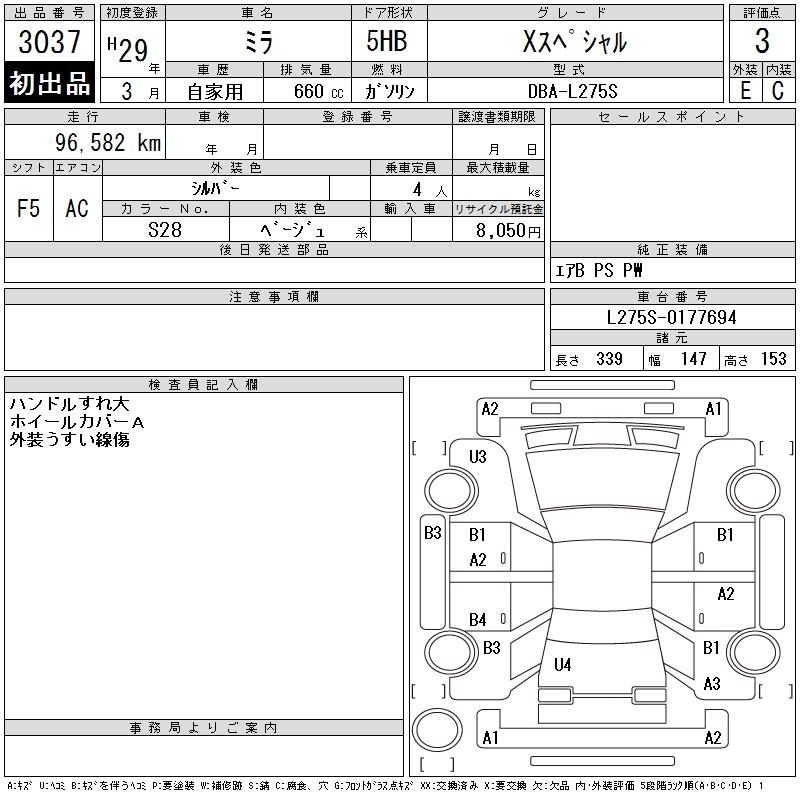 Check out the detailed auction report for the Daihatsu MIRA below