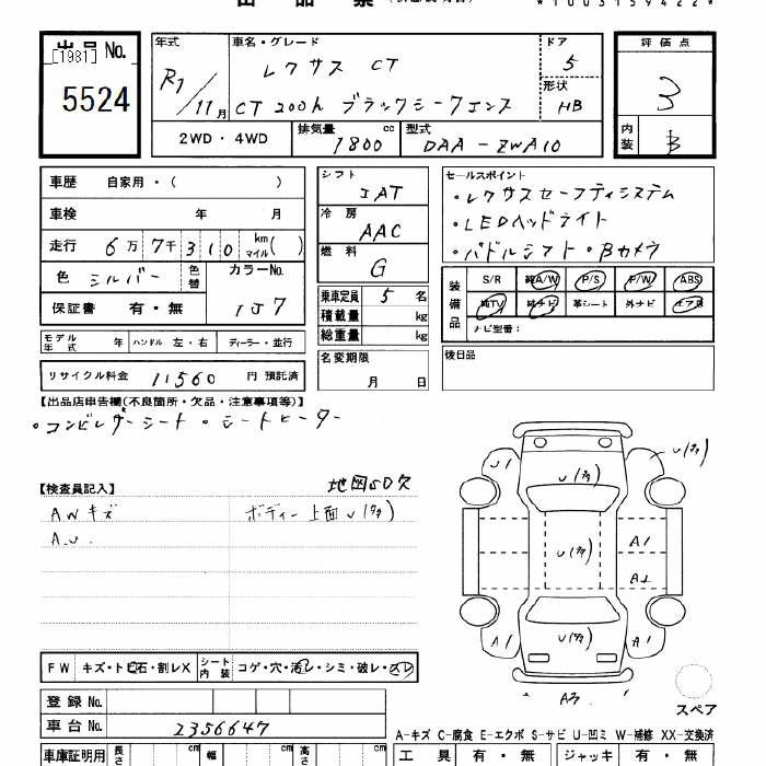 Check out the detailed auction report for the Lexus CT below