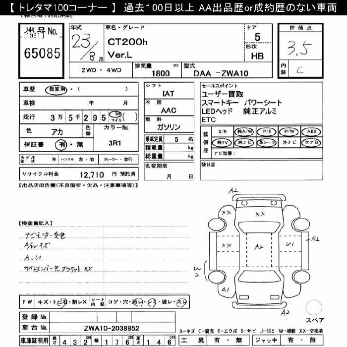 Check out the detailed auction report for the Lexus CT below
